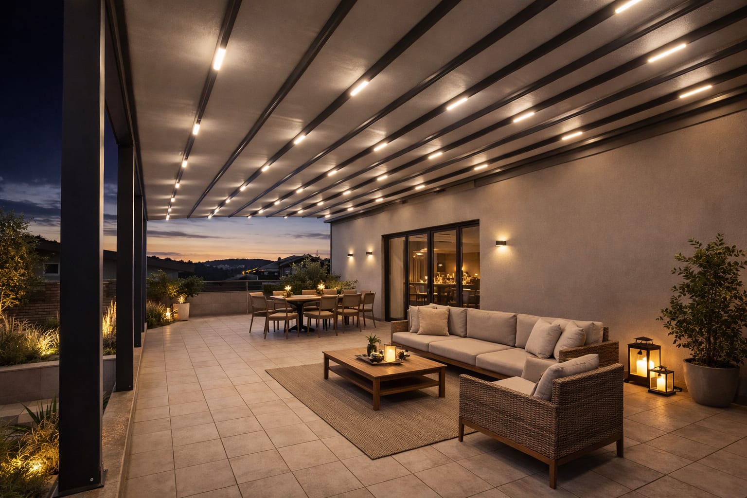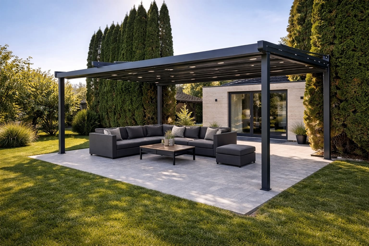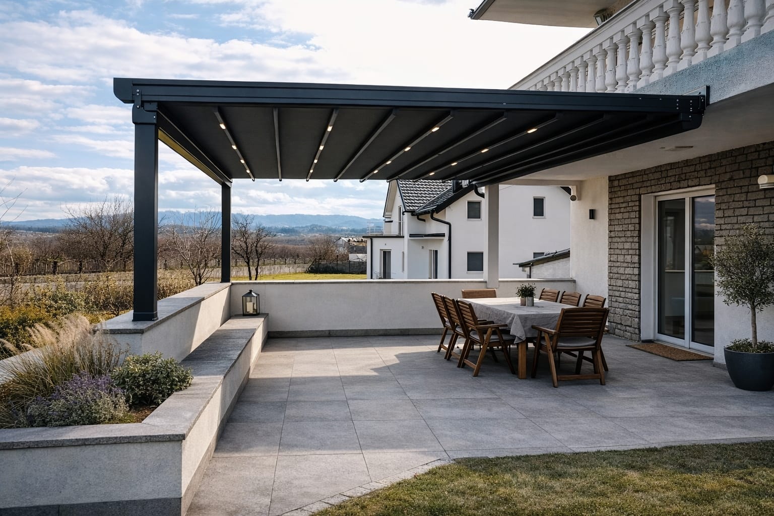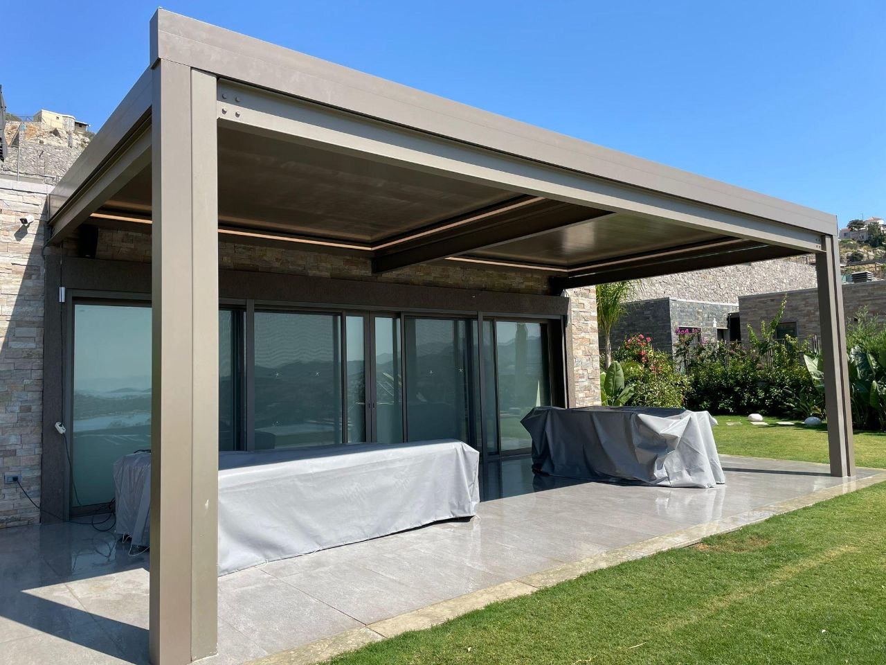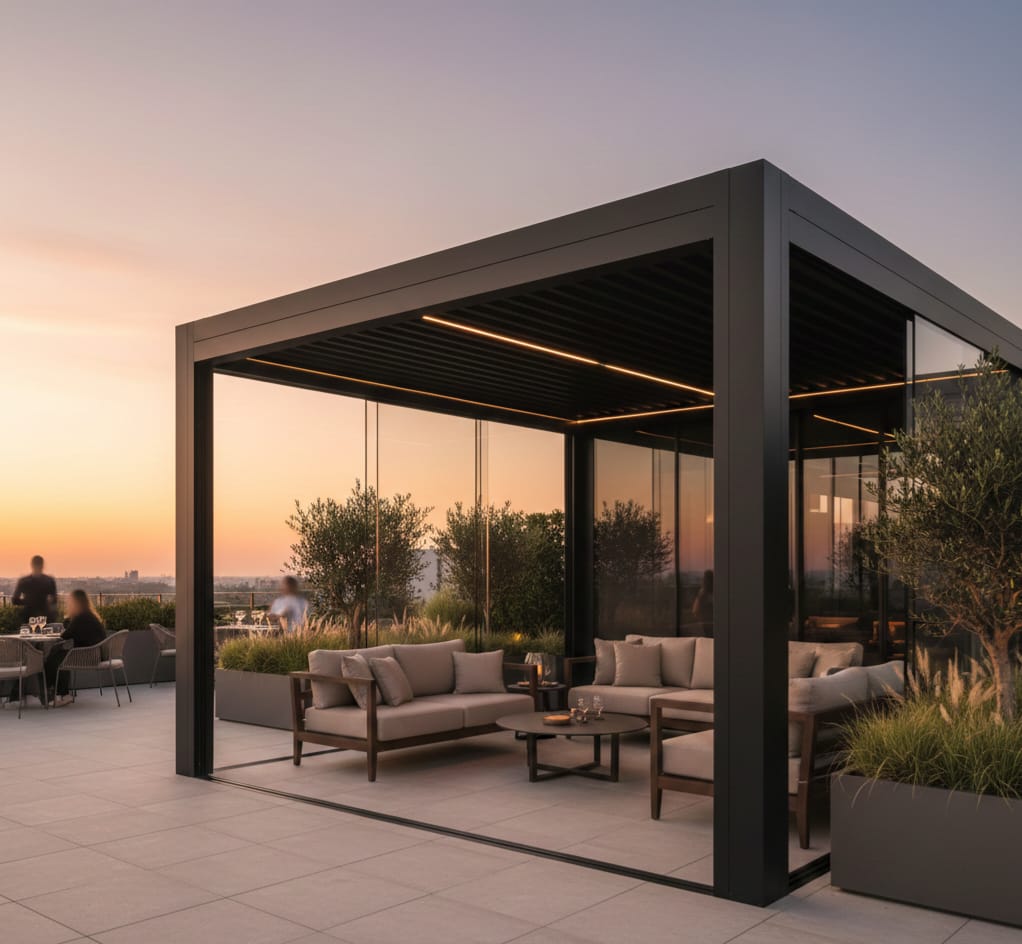 Otpornost u svim vremenskim uslovima – od osnovnih modela do premium pergola sa otvaranjem preko 11 metara u jednom potezu.