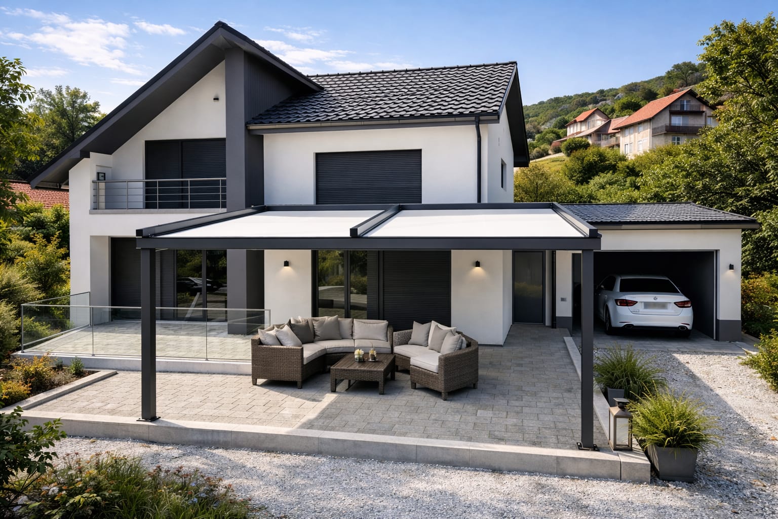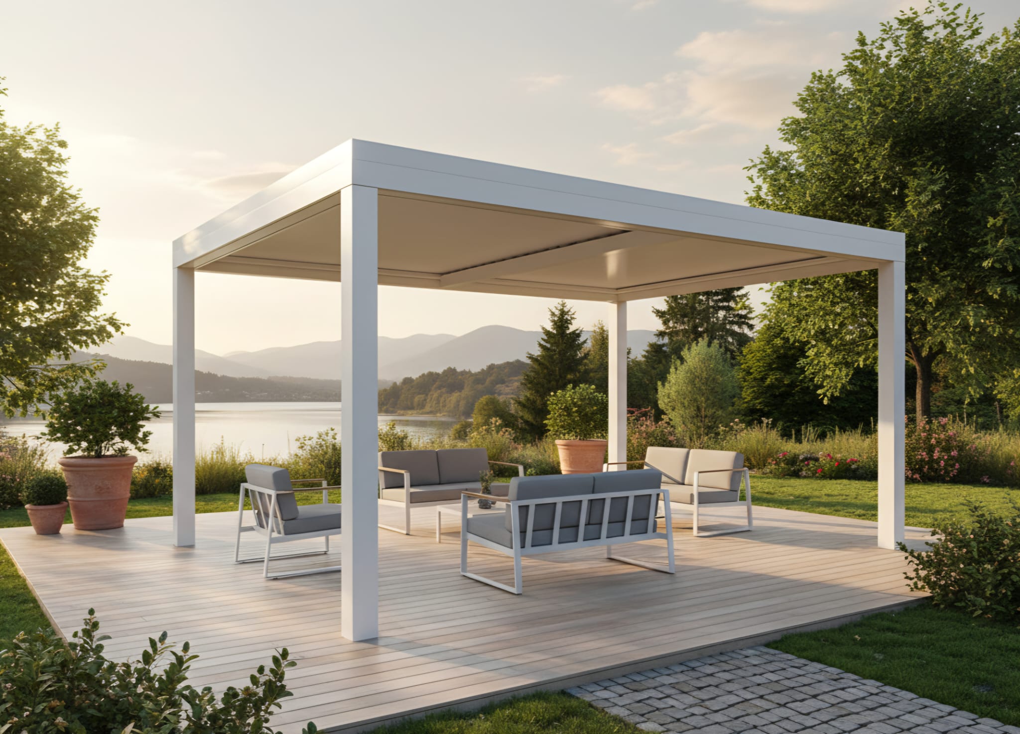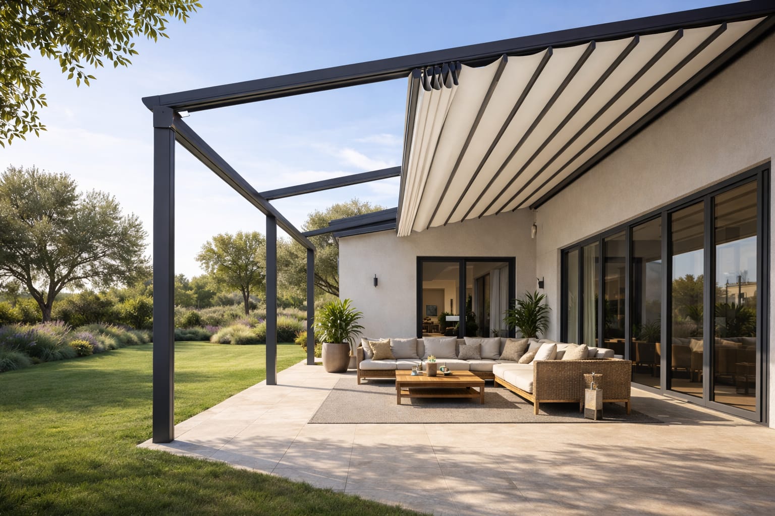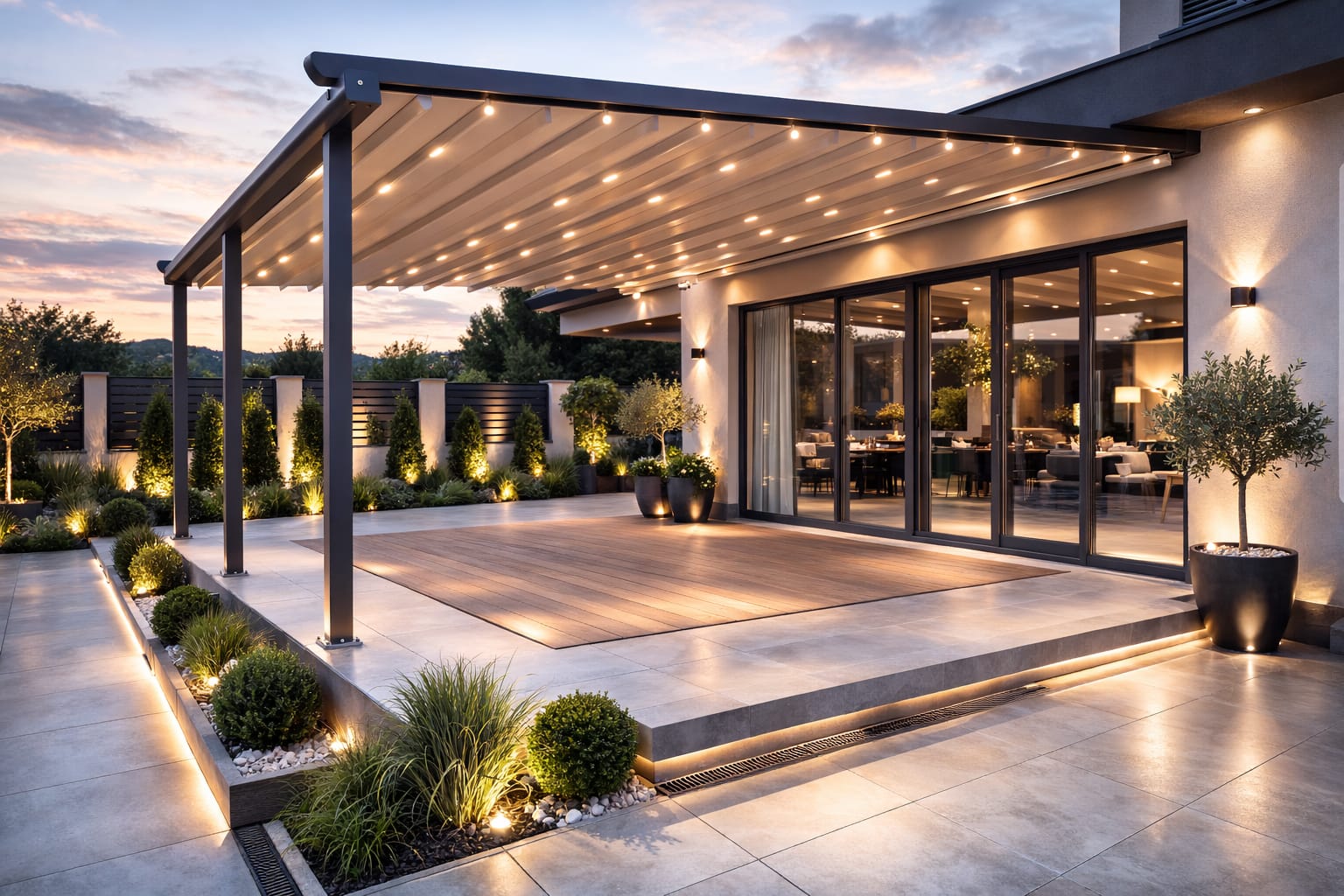Otpornost u svim vremenskim uslovima – od osnovnih modela do premium pergola sa otvaranjem preko 11 metara u jednom potezu.