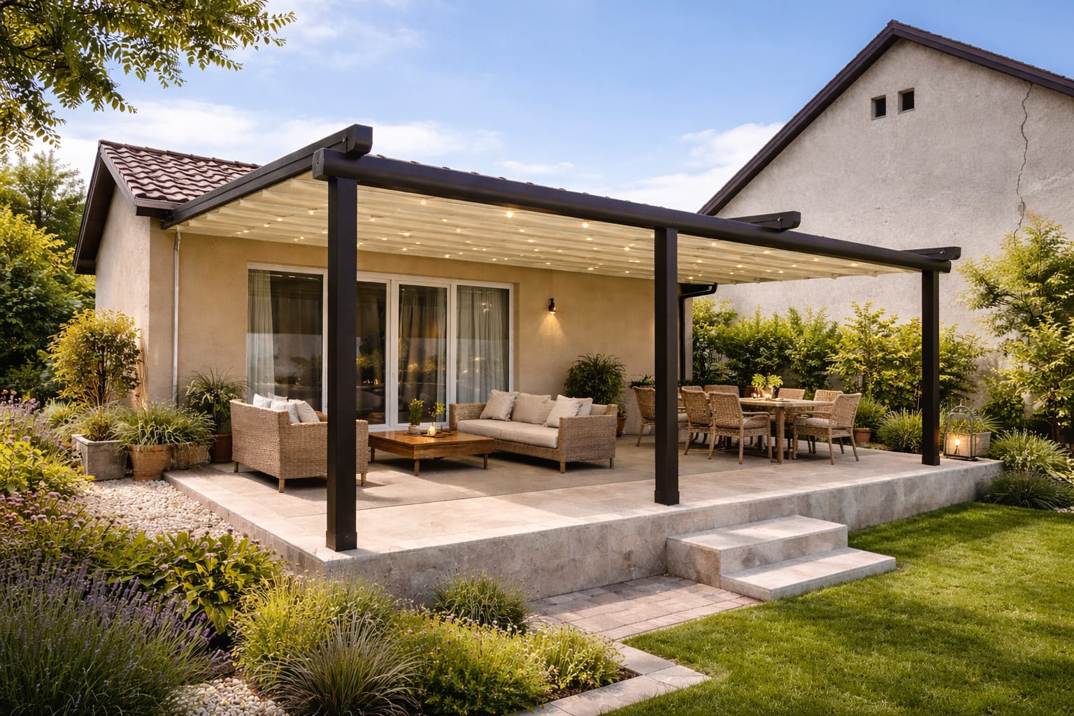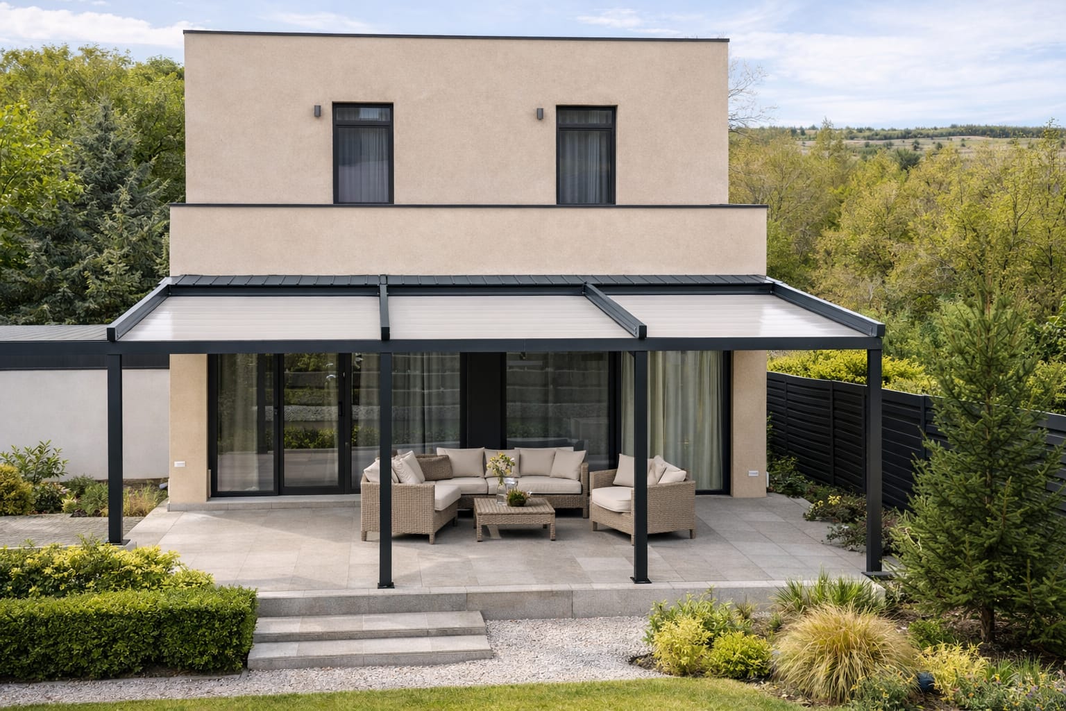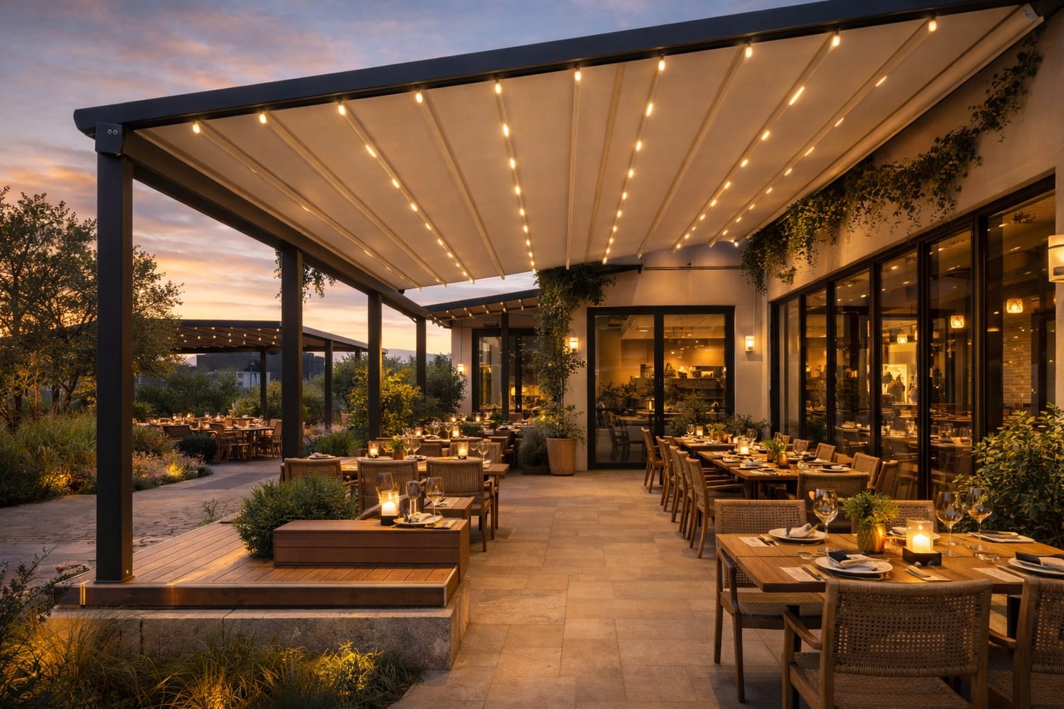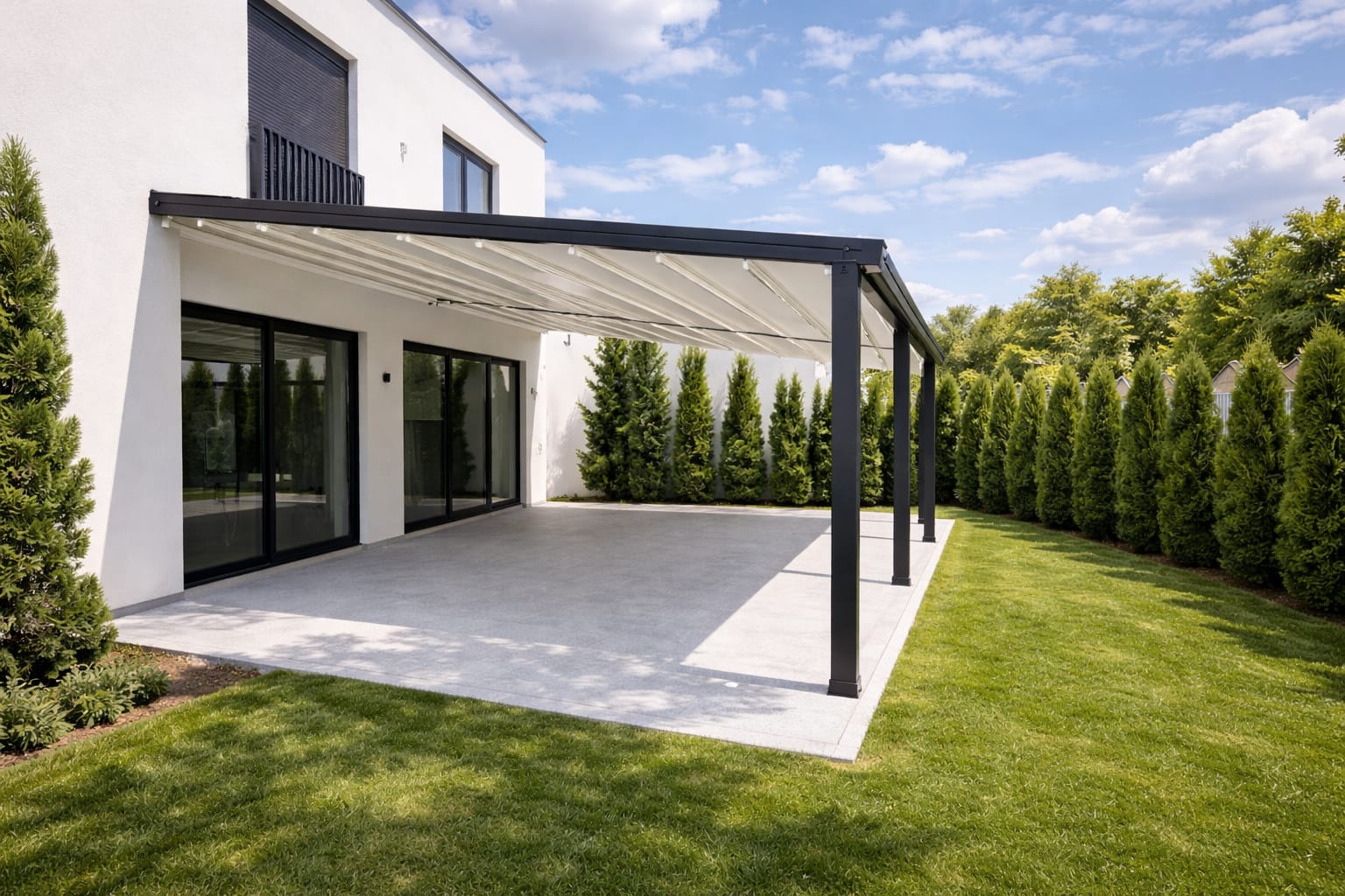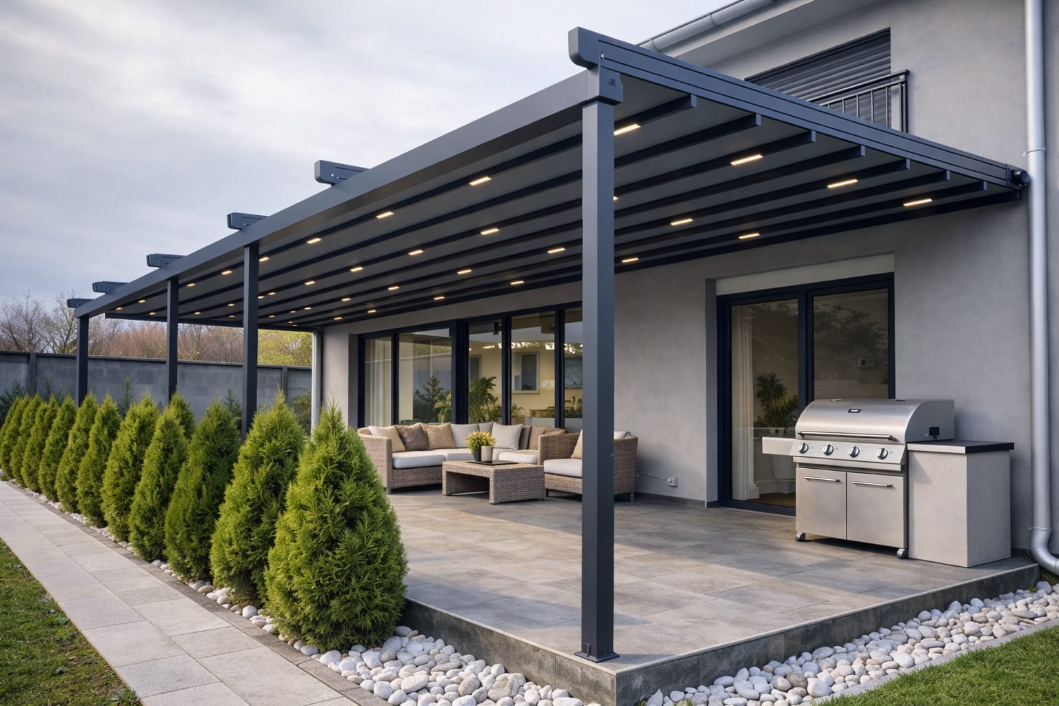 Otpornost u svim vremenskim uslovima – od osnovnih modela do premium pergola sa otvaranjem preko 11 metara u jednom potezu.
